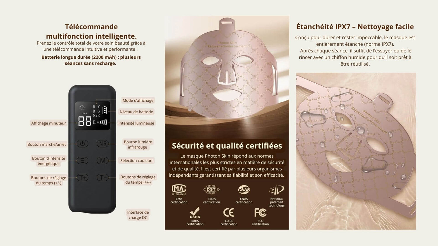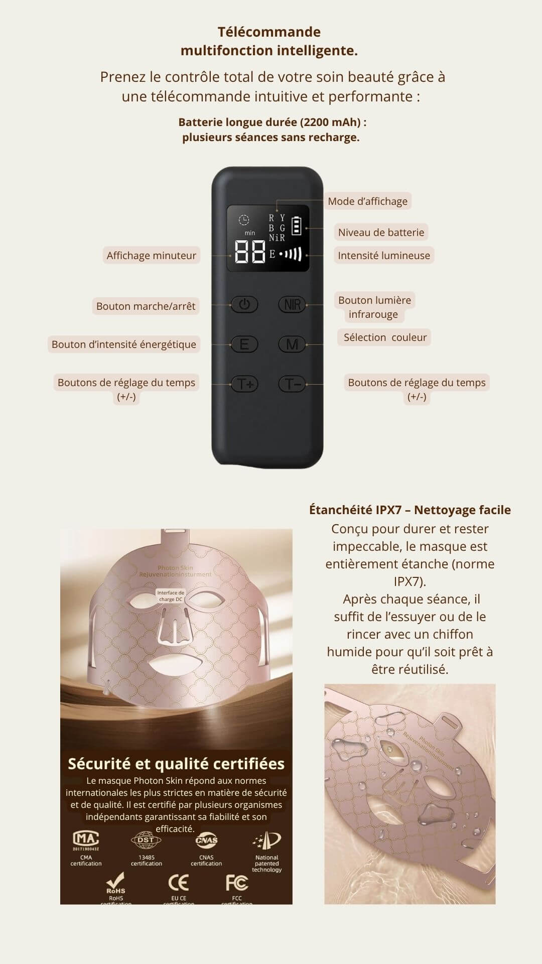 Avec le Masque Photon Skin, transformez votre routine beauté en un moment de bien-être absolu.
